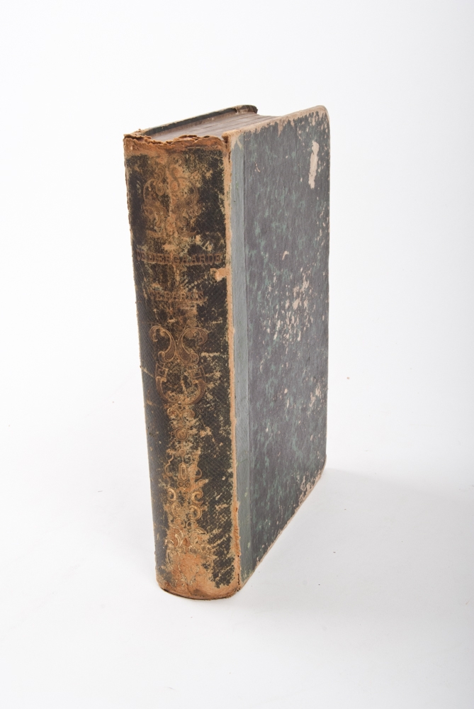 Spine and binding worn, inside sl. stained. Plates complete and in good condition.