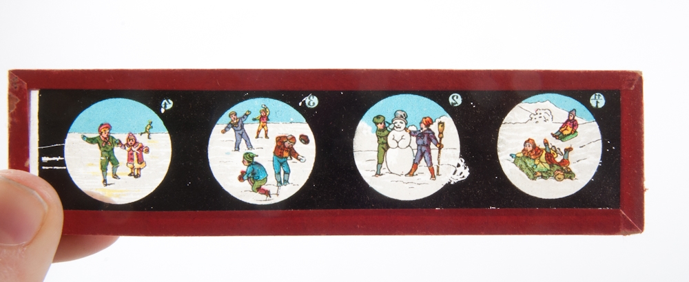 Lot with 45 stereo photographs with different themes, 6 Tissue cards, a box "Madonna del Sasso" with 15 cards - and 5 boxes with stereo glass plates.