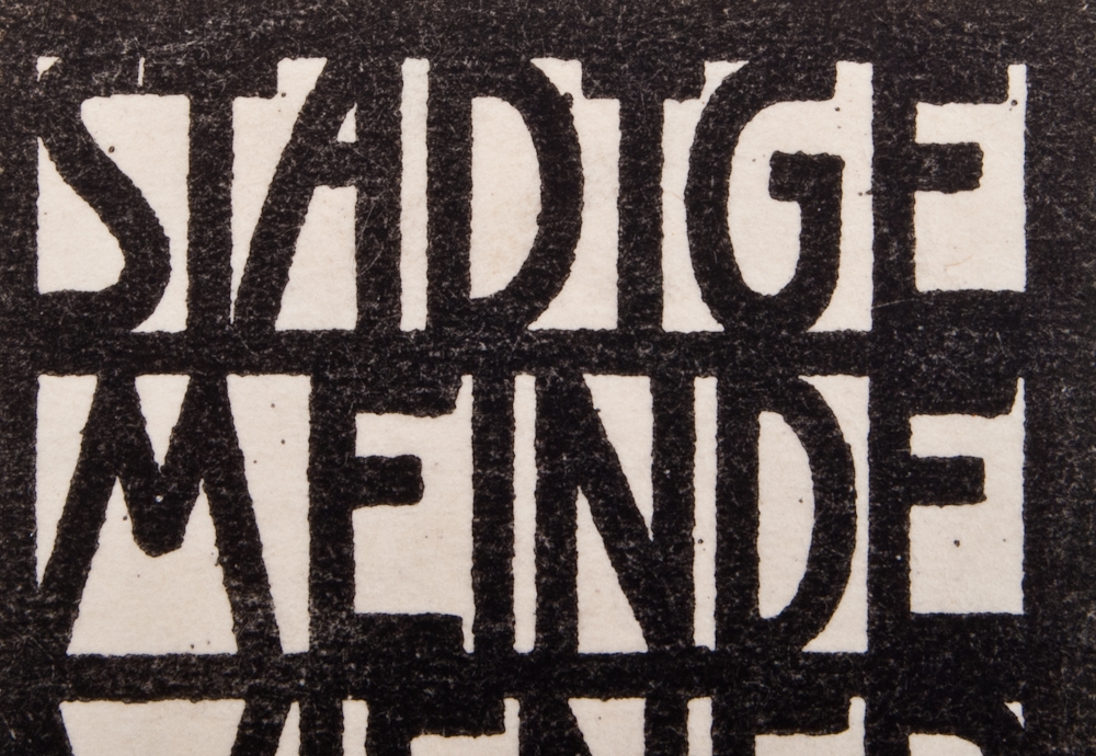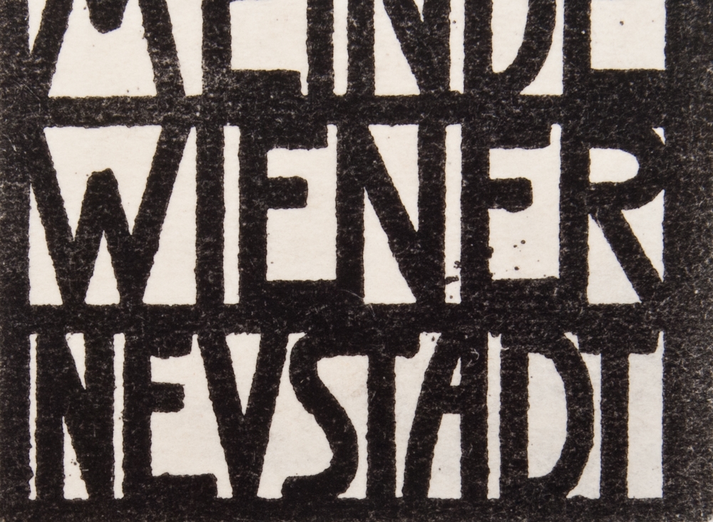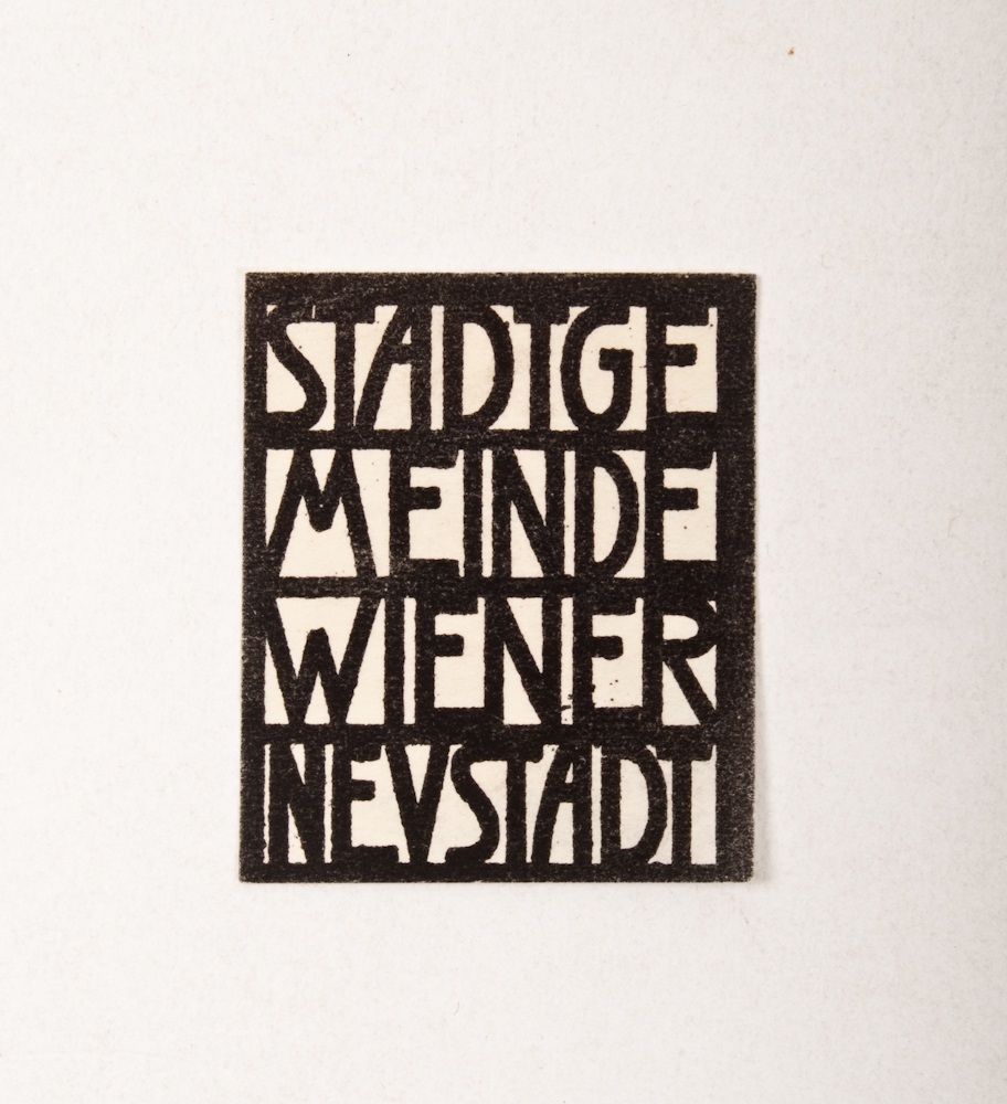 Designed by Koloman (Kolo) Moser (1868-1918), printed in black-and-white, 37 x 31 mm. Logo Stadtgemeinde Wiener Neustadt.