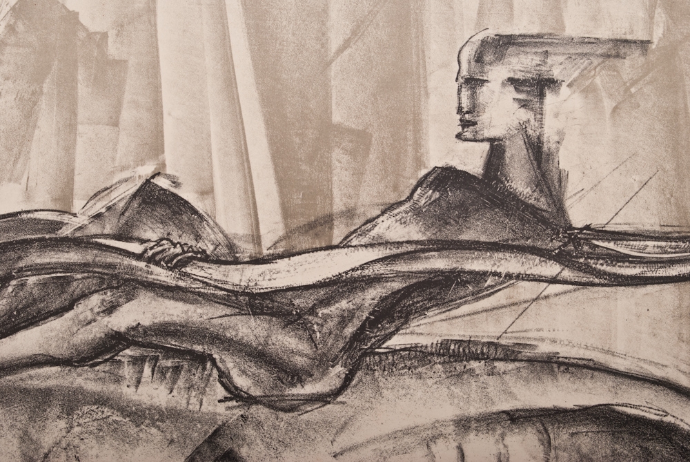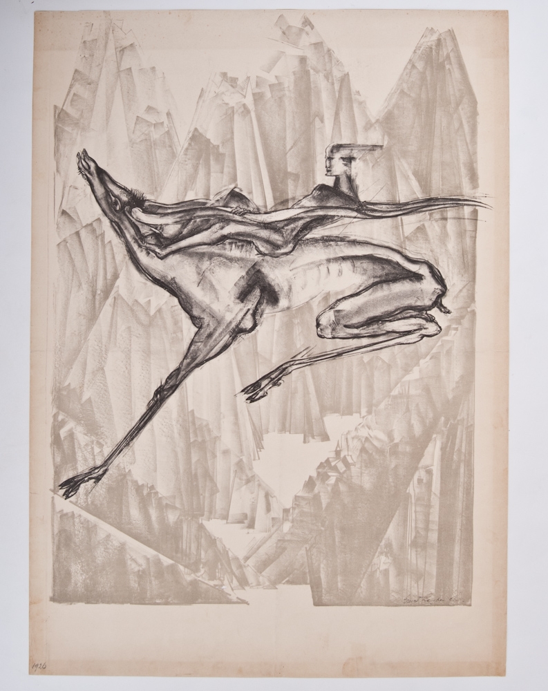 Peer Gynt. Poster without text for a show by N.V. Schouwtooneel lead by Adr. van der Horst and Jan Musch. Black and grey variant. 105x75 cm.