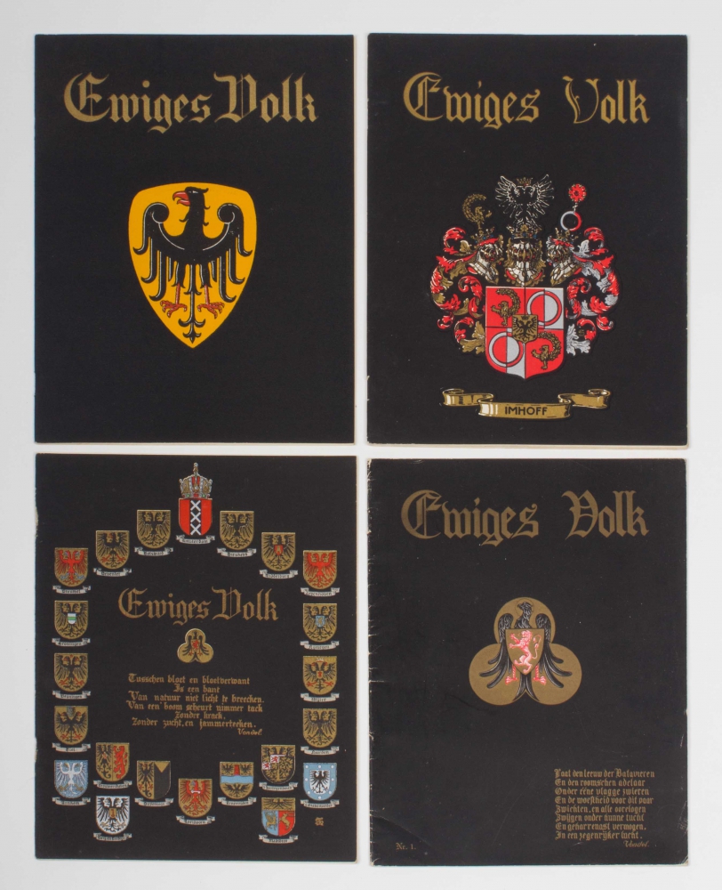Schriftenreihe des Verbandes deutscher Sippenforscher in den Niederlanden. Schriftführerin Frau Edler. No. 1-4 [= all]. Soest, "Zonneveld", n.d. (1941-1943), 32;42;24;24 p., with illustrations, original uniform cover, 4to (staples removed, rare complete set).