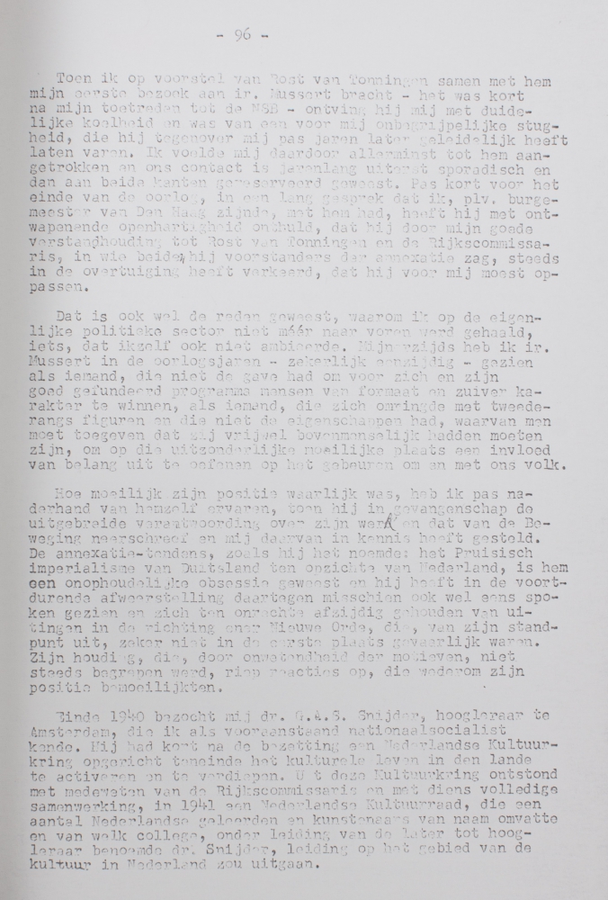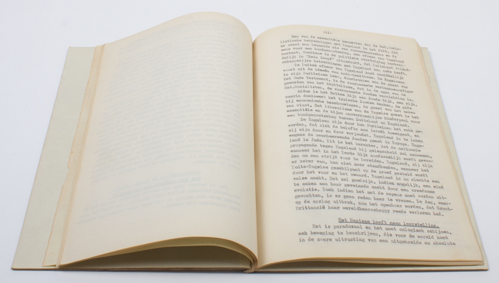 Very interesting first-hand source. On the author, see: https://nl.wikipedia.org/wiki/Henri_van_Maasdijk. Henri Catharinus van Maasdijk was a passionate admirer of Adolf Hitler and a staunch anti-Semite. In the foreword (Autumn 1946), addressed to his 4 sons and his daughter, he writes that he has been condemned to 20 years in prison [for collaboration] and that he thinks that the mother of the children will read them from the bundle of memoirs. He tells of "de strijd, waaraan jullie vader heeft deelgenomen, een strijd om een betere wereld, waarin hij geloofde". The introduction (9 p.) is written in Cel 387, "Einde 1945" and in it the writer notes he began on 12 November 1945 with writing "deze terugblik op jaren van innerlijke ontwikkeling, van hard werk en strijd voor een ideaal" in the political prisoners ward of the Scheveningen prison.