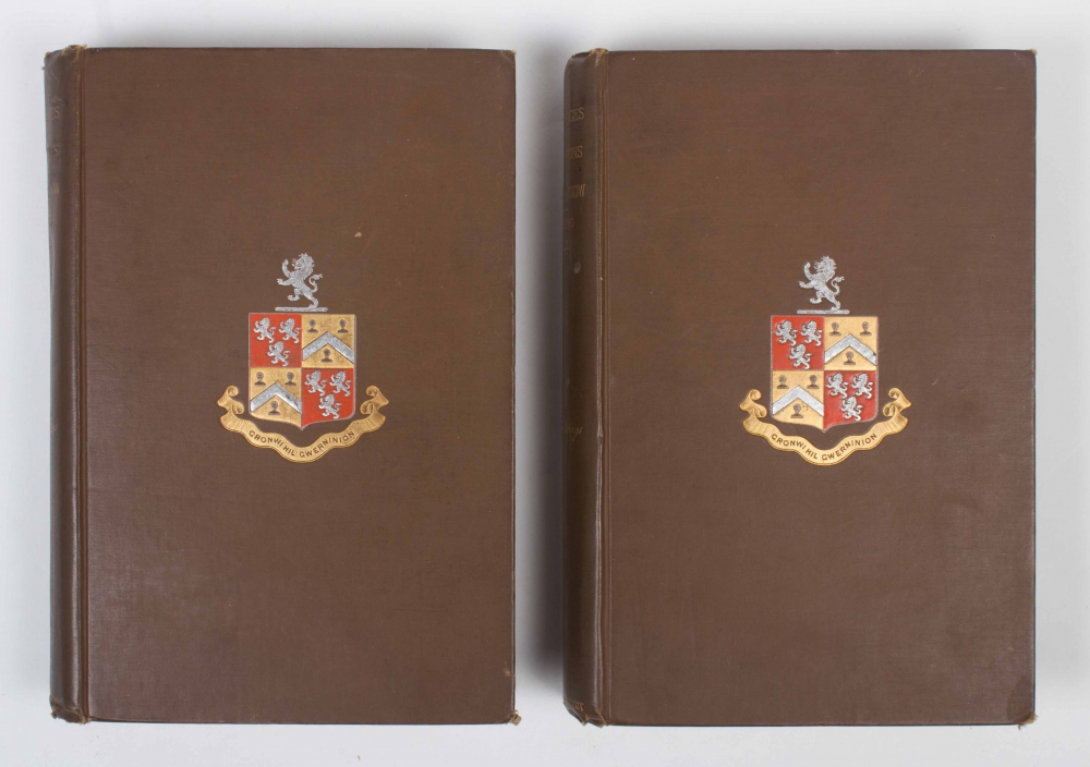 A large part of the uncoloured plates in vol. 1 with water stain in blank margin (worse at the end); binding somewhat worn and back board and backstrip binding 1 trifle affected by damp; traces of ex libris on inside of both boards.