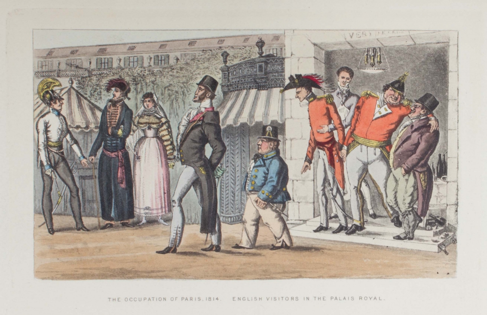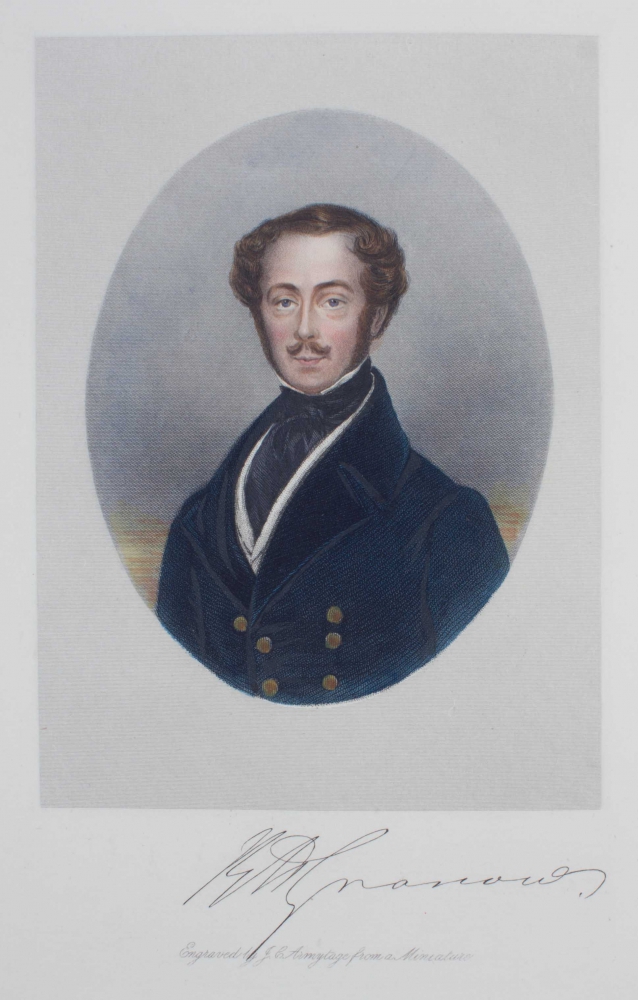 Being anecdotes of the camp, court, clubs, and society 1810-1860. With Portrait, four Woodcuts, and Twenty Etched and Aquatint illustrations from Contemporary Sources by Joseph Grego. London, J.C. Nimmo, 1889, first ed., 2 vols., XXVIII,351; XII,343 p., with 25 plates in either of two conditions: uncoloured proof or hand-coloured (and heightened with gum), original gilt cloth, top edge gilt, 4to.