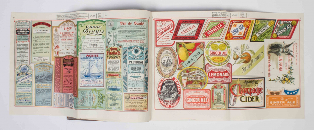ca. 1900. (34), 290, xxxiii pp. Cloth with rich binding decoration. Impressive catalogue with packaging materials, dentist's instruments, perfumes and more. With several folding pages with pasted sample labels. Pristine copy of a beautiful trade catalogue.
