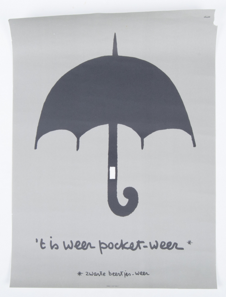'T is weer Pocket-weer. Zwarte Beertjes weer. 63 x 45 cm. Sm. chip from margin top r. + Lezend beertje. 63 x 45 cm. Both later publications with ISBN.
