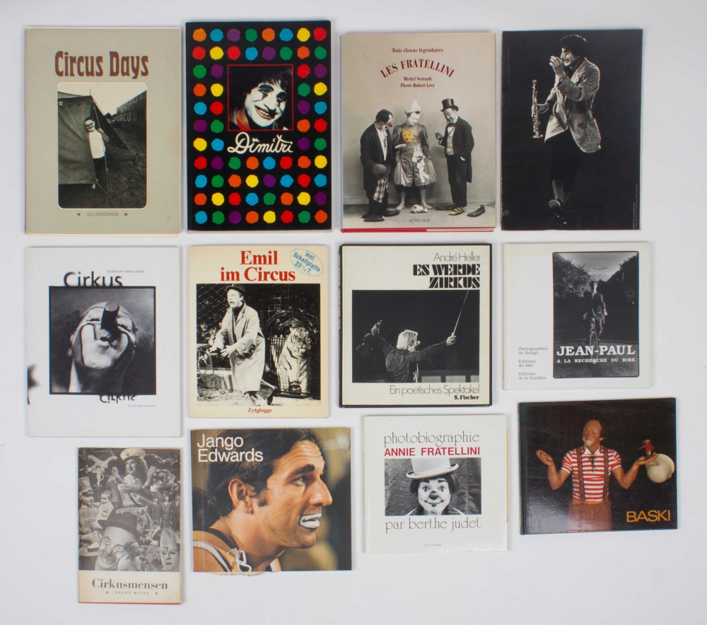 Lot with 12 photobooks, incl. Circus Days. Jill Freedman, Harmony Books, 1975. 4to, 128 pp. + Photobiographie Annie Fratellini par Berthe Judet. Atelier des Bruges, 1980. Hc. - and another 10 works.