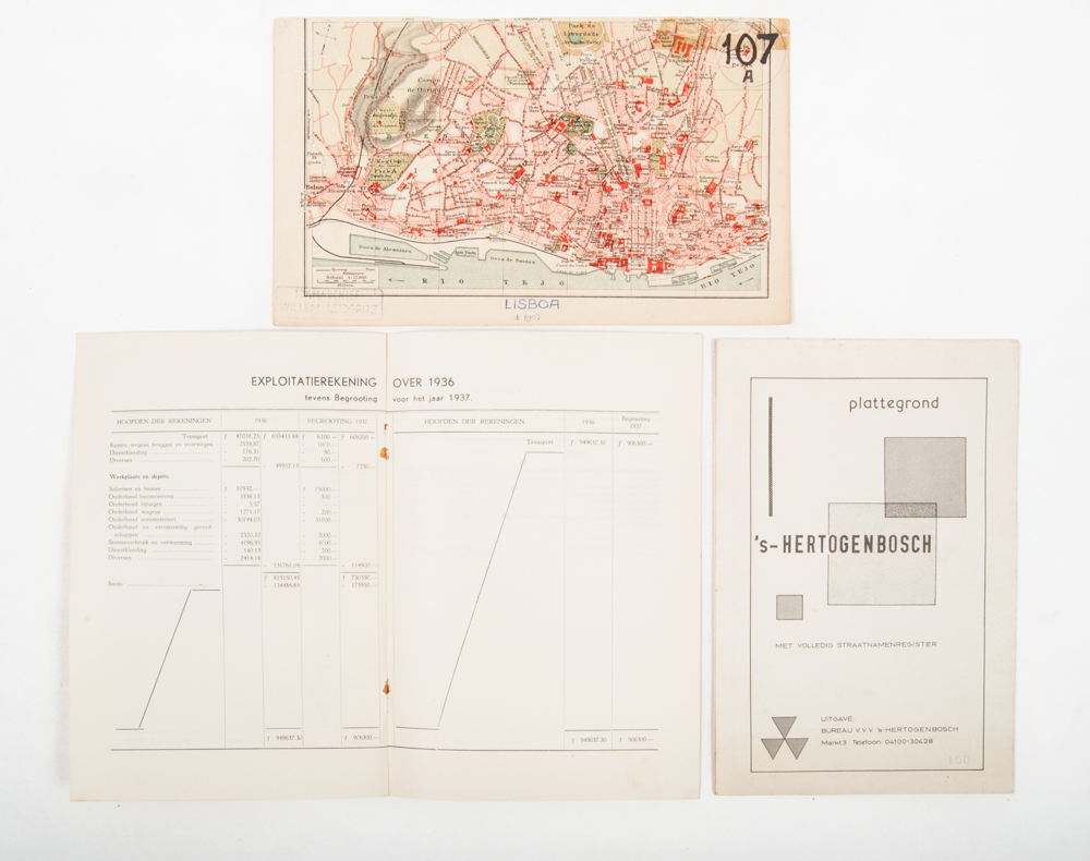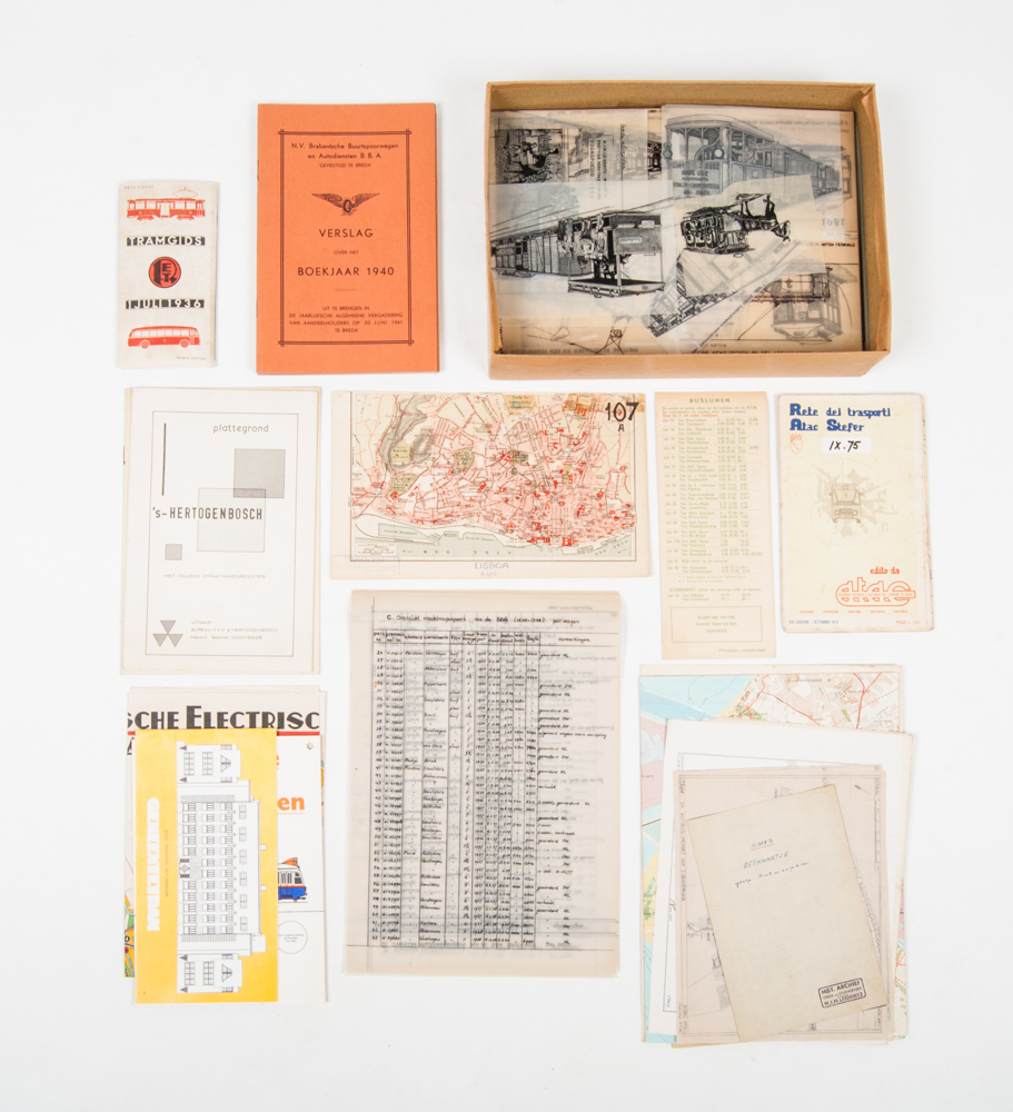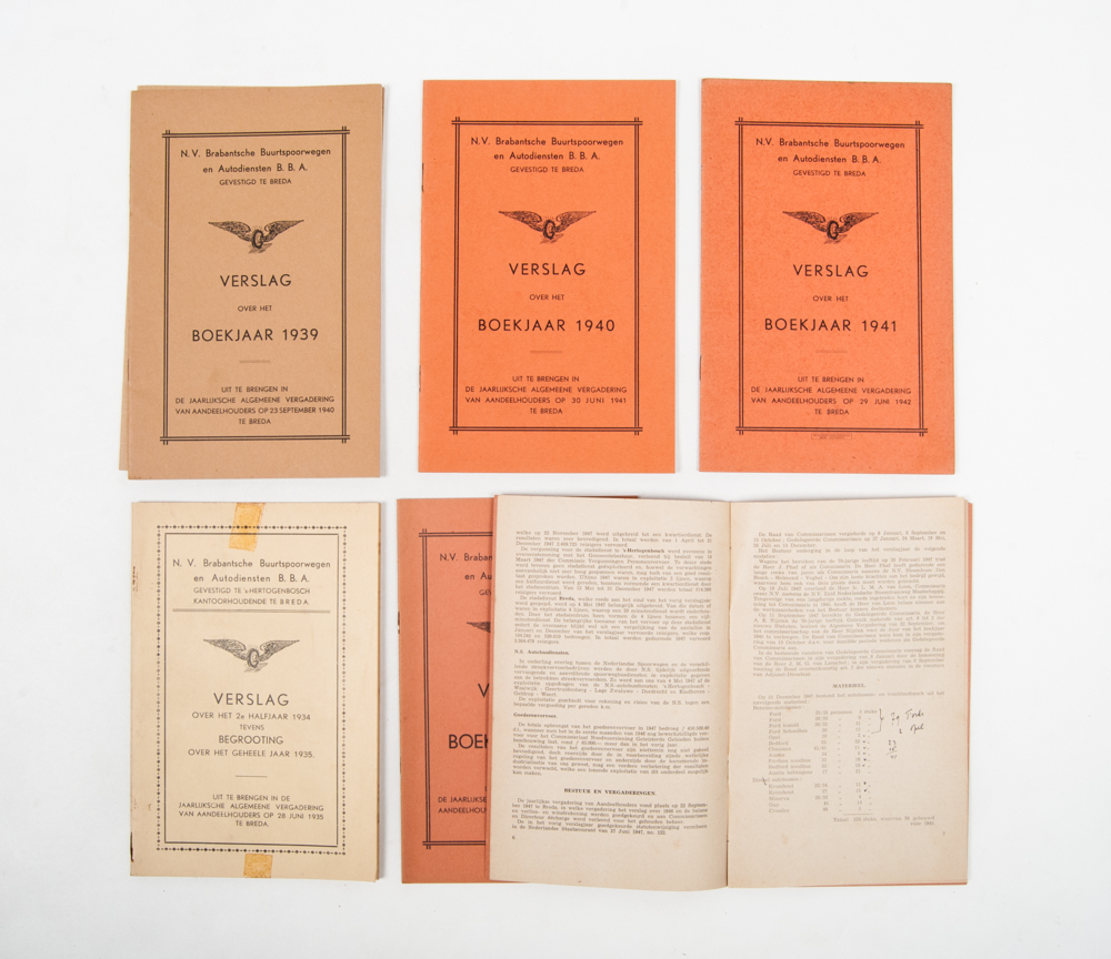 Reports about fiscal years 1934-35, 1936-37, 1939 (2x), 1940-1941, 1947 (2x) + several single schedules and parafernalia + tram guide 1 July 1936 R.E.T.