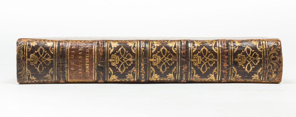 Amsterdam, Theodorus Dankerts, 1726, first edition, (8),121,940 p., with engraved frontispiece by J. Schijnvoet and 60 engraved emblematic illustrations, contemporary gilt half leather, ribbed back with morocco title shield and repeated decoration of a crown above initials (?).