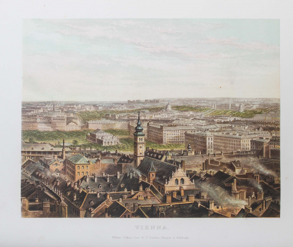 Here and there slightly foxed; hinge of front board reinforced with tape on inside. With ex libris of Cornelis Koeman (1918-2006) on inside front board. Mostly important for the very fine and colourful views of London, Edinburgh, Dublin, Paris, Brussels, Rome, Berlin, Vienna, St. Petersburg, Constantinople, Calcutta, Beijing, Montreal, New York, Melbourne and Sydney (all ca. 17 x 22 cm.).