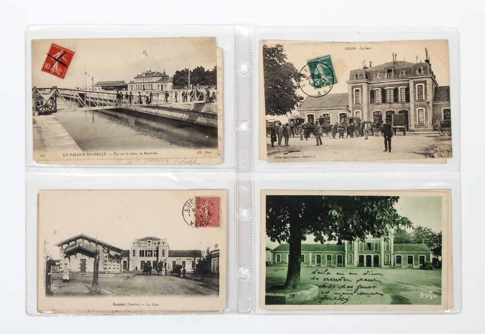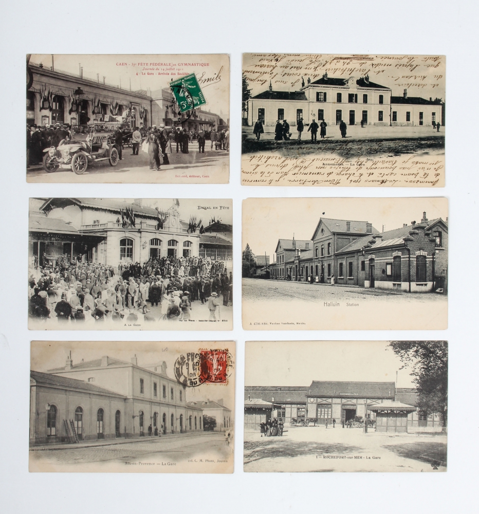 Album with 100 inserted cards, all related to French railway stations, ca. 1890-1930.
