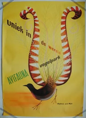 This item contains no English description. See the Dutch description: Avifauna Vogelpark, Alphen a/d Rijn. Ca. 1950. 115 x 81,5 cm.