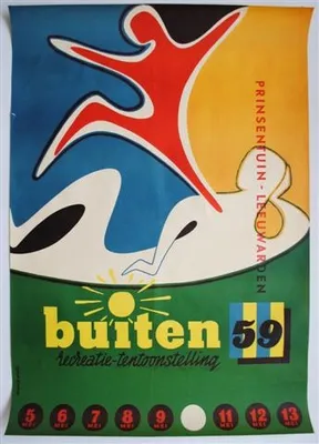 This item contains no English description. See the Dutch description: Tentoonstellingsaffiche. Juni juli augustus 1954. Ontwerp Wim Brusse, 1954.