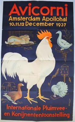 This item contains no English description. See the Dutch description: Internationale Pluimvee- en Konijnententoonstelling. 909 x 59 cm. Signatuur PZ. (mogelijk Piet Zwart?)