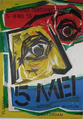 This item contains no English description. See the Dutch description: Nationale Tentoonstelling 5 mei, Stedelijk museum Amsterdam, 1955. 107x78 cm. Ontw. Dick Elffers. Offsetdruk...