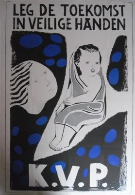 This item contains no English description. See the Dutch description: Affiche van de Katholieke Volkspartij. 1956. Ontw. Simon. 118x83 cm.