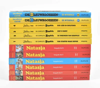 Integrale deel. Dupuis, 2018-2021. Vols. 1-6. Added: (1) Natasja 23. Dupuis, 2019. (2) Jidéhem. De complete Sophie. Arboris, 2016. Vol. 1-4. (3) Salvérius, C. De Blauwbloezen....