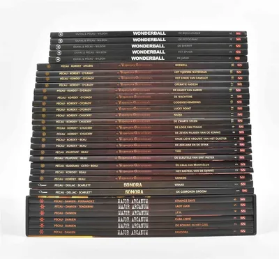 (1) De as van de katharen. Arboris, 1997-2008. Nos. 1-10. Sc. (2) De wind der goden. Glénat, 1985-1997. Nos. 1-12. Hc. (3) Aria. Dupuis, 1998-2008. Nos. 1-30. Sc. -and 17 others, most sc.