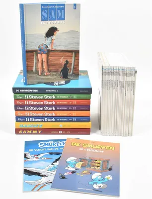 (1) De Smurfen. Standaard, 2009-2016. Nos. 1-15, 17-18, 20-21, 23-35. -and 2 other Smurfs titles. All sc. (2) Steven Sterk De Integrale. Lombard, 2017-2019. Vols. 1-5. Hc. -and 4 others.