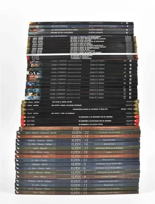(1) Elfen. Daedalus, 2014-2018. Nos. 1-19, 21-22. Most hc. (2) Game of Thrones. Dark Dragon, 2012-2015. Nos. 1-12. No. 1 w. signed and numb. ex libris. Hc. (3) Vae Victis! Talent,...