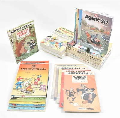 (1) Agent 212. Dupuis, 1980s-2021. Nos. 1-30. Some still shrink wrapped and w. extras. (2) Jaap. Idem, 1977-1997. Nos 1-16. (3) Katamarom. Idem, 1973-2021. Nos. 1-33, 44. All sc.