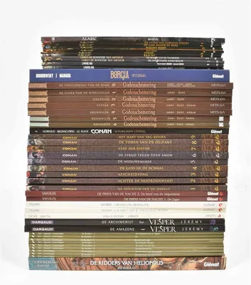 (1) Godenschemering. Medusa/ IN, 2014-2020. Nos. 0-6. Hc. (2) Conan. Dark Dragon, 2000s. Nos. 1-9. No. 1 w. ex libris. Hc. (3) Ridders van Heliopolis Integraal. Glénat, 2020. Hc....