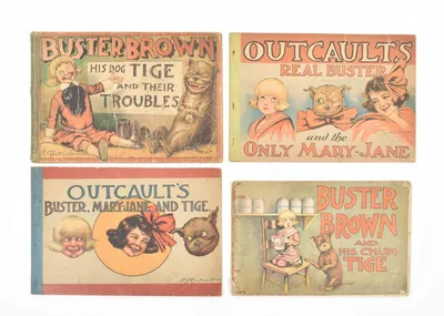 4 books from this famous American comic, all publ. by W. & R. Chambers in Edinburgh. (1) Buster Brown, His Dog Tige and Their Troubles. Ca. 1905. (2) Outcault's Buster, Mary-Jane...