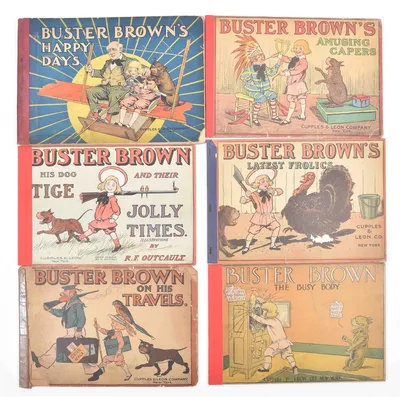 6 books from this famous American comic, all publ. by Cupples & Leon in New York. (1) Buster Brown, His Dog Tige and Their Jolly Times. 1906. (2) Buster Brown's Latest Frolics....