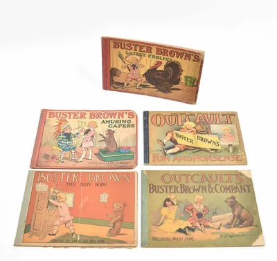 5 var. early 20th cent. eds. of this famous American comic. (1) Buster Brown's Latest Frolics. London, Dean & Son, 1907. (2) Buster Brown's Amusing Capers. New York, Cupples &...