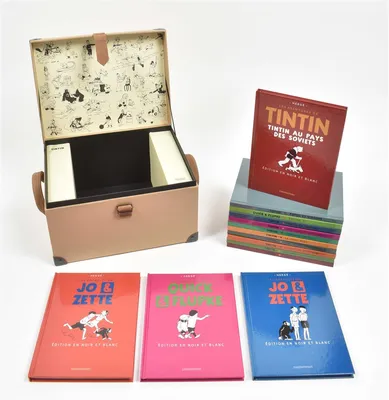(1) Hergé. Tintin en noir et blanc. Casterman, 1973. 9 sm. books in orig. dec. clamshell box (sl. worn). (2) Harrap's Tintin au pays des mots. Harrap, 1989. Hc. -and 4 other Tintin...