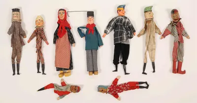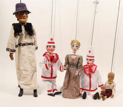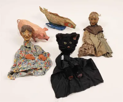 [Hand puppets] Six various large sized hand puppets: (1) Kasperle