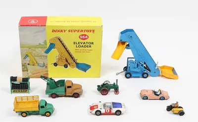 Dinky Toys, France. NM, in original box. (2) 2CV Citroën Modèle 61. Green version, Dinky Toys, France. NM, in orig. box. (3) Dinky Supertoys 964. Elevator Loader With working hopper...