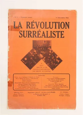 Paris, Naville and Péret, 1924. Printed orange wrapper, staple-bound, 29.4 x 20 cm, 32 pp. Rear wrapper missing. Front wrapper loose, with tape remnants and edge wear. Interior...
