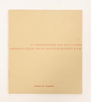 Paris and Brussels, Editions de L'Échiquier, 1932. Softcover, 28 x 24.5 cm, 224 pp. printed in red and black. Famous chess book by Marcel Duchamp with mathematically exact anayses...