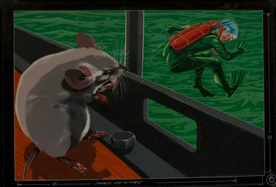 This item contains no English description. See the Dutch description: Jan Huizinga (1925-1992). Plakaatverf, gemaakt voor filmstrook van toverlantaarn. Pinkeltje gaat in duikboot...
