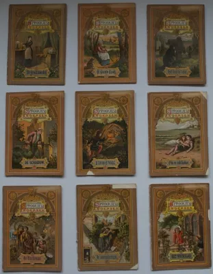 This item contains no English description. See the Dutch description: De Drie meesterstukken. J. Vlieger, Amsterdam, ca. 1880. Papieren boekje, 8 p., met 7 platen in kleur. +...