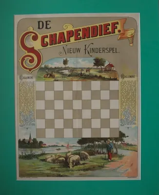 This item contains no English description. See the Dutch description: Nieuw Kinderspel. B. Jacobs, Groningen, ca. 1920. Gelithografeerd spel met regelament aan zijdes. 61,5 x 46 cm.