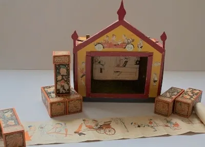 This item contains no English description. See the Dutch description: Godfried Bomans, 1941. Leporello met 3 opklapbare taferelen uit sprookjes van 1001 nacht, K-nummer K390.