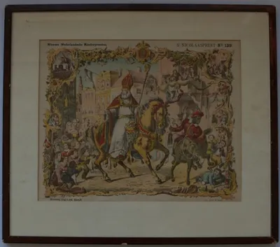 This item contains no English description. See the Dutch description: Nieuwe Nederlandsche Kinderprenten. I. de Haan, Haarlem. Litho Emrik en Binger, ca. 1870. 33,5 x 42 cm. In lijst.