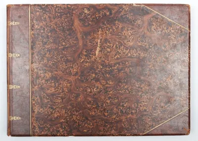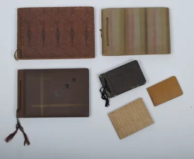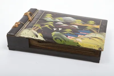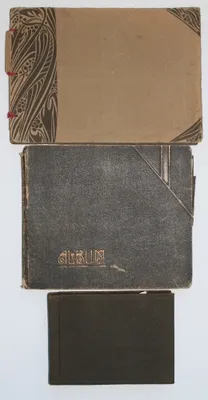 ca. 1900, 18 cardboard pages, 23x33x6,5 cm., wooden binding.