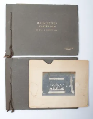 Amst., Fotobureau J. van Dijk, 1928, 8 leaves with 8 affixed page-sized photographs, 9 separate photographs (some with stamp on the back), orig. cardboard cover, oblong 4to (exquisite...