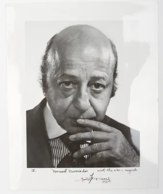 Orig. photograph, 25,5x20,5 cm., signed "1977" and "Manuel Mariadas with the warm regards" in lower margin, with copyright-stamp "Karsh, Ottawa" on back.