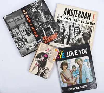 Dumont, 1966. With s.o., torn along extremities. + Amsterdam, old photographs 1947-1970. Unieboek, 1979. + Eye Love You, Uniekboek, 1977. Second edition. + Cor Jaring, Je bent...