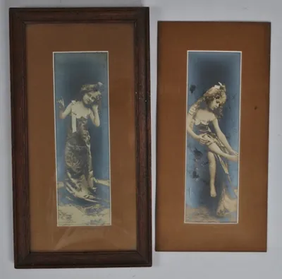 2 Jugendstil, silver gelatine photographs of girl in 2 different poses. 9x28,5 cm. 1 in frame and 1 in passe-partout.