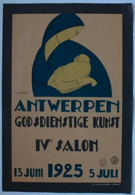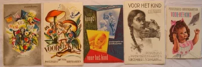 Small posters for stamps sold to benefit children, printed by Senefelder, Amsterdam. Voor het Kind "Want derzulken is het hemelrijk", 1942, Aart van Dobbenburgh, 24 x...
