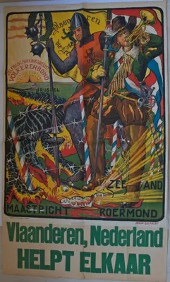 Zelfbeschikkingsrecht Volkerenbond Vryheid, Vlaanderen, Die Lee, Brussel, Zeeland, Maastricht, Roermond. Johan Geeraert, Dr. Lithografie Senefelder, Amsterdam, ca. 1919. 135 x...