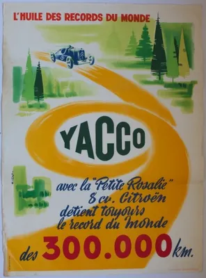 Avec la "Petite Rosalie" 8 cc Citroen detient toujours le record du Monde des 300.000 km. M. Collet 1956. 80x58 cm. Two light folds, otherwise fine.