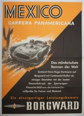 Das mörderischste Rennen der Welt bestand Hans-Hugo Harmann auf Borgward mit Continental-Reifen als einziger Deutscher (..) Printed by Georg Westermann, Braunschweig, ca. 1954.