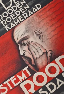 Stemt Rood S.D.A.P. Schrier, 1933. 54x38 cm. Small fold upper right corner, otherwise good copy.