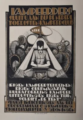 Eigen Kampeerterreinen eigen Clubmagazijn. Huurafdeeling Kampeer-uitrusting en Eigen Tijdschrift "De Tent". Vraagt Inlichtingen aan het Secretariaat C.G. Kamerling Stoeldraaierstraat...
